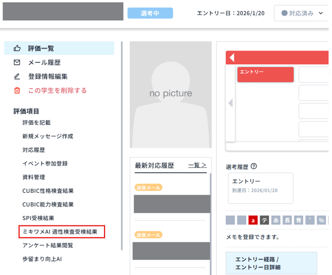 学生・候補者の「個人ページ」を開きます。