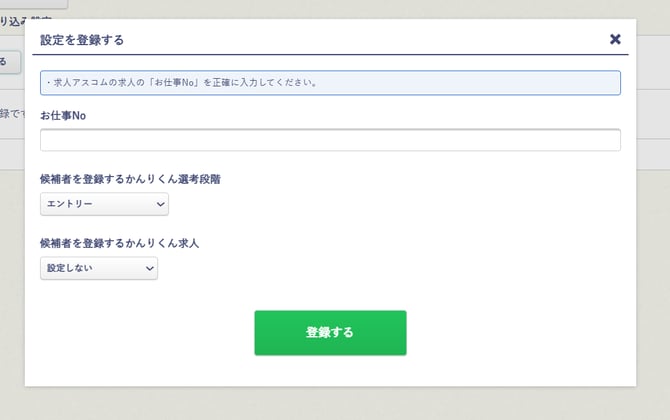 求人アスコムの応募者情報を自動で採用一括かんりくんへ取り込む設定と運用手順を理解できます。