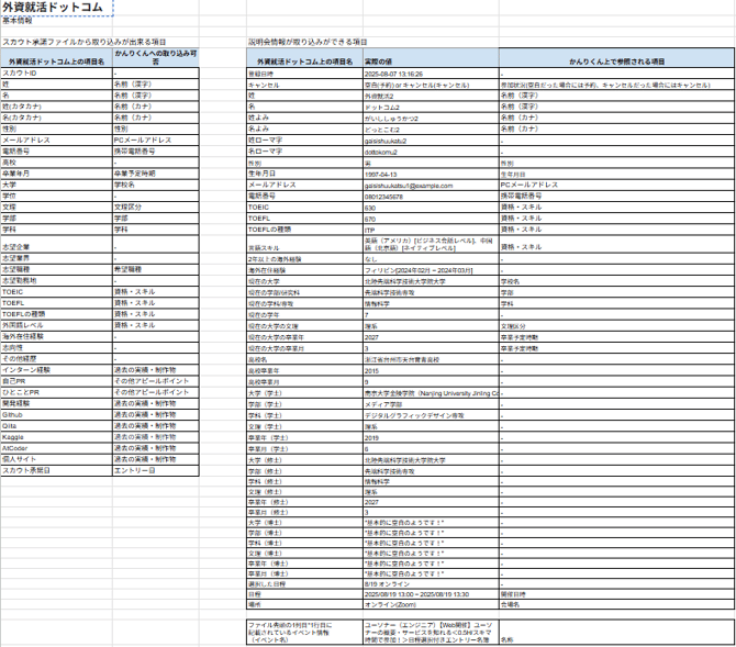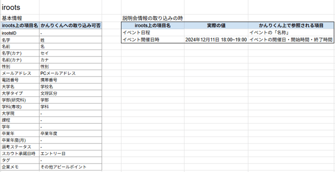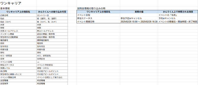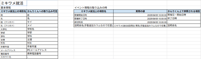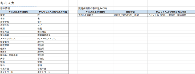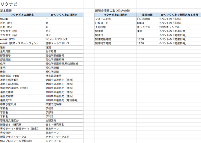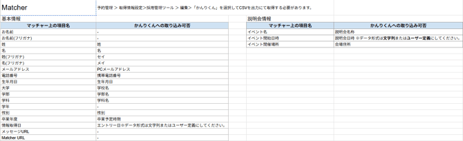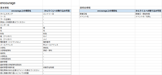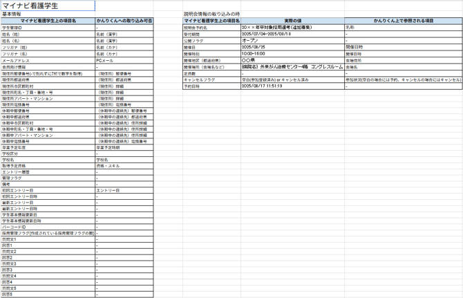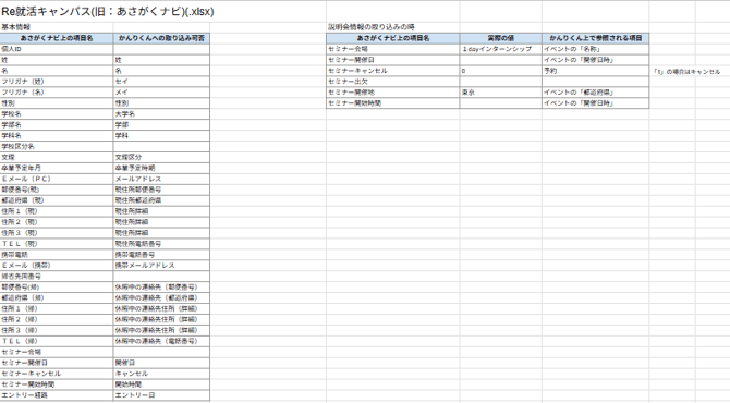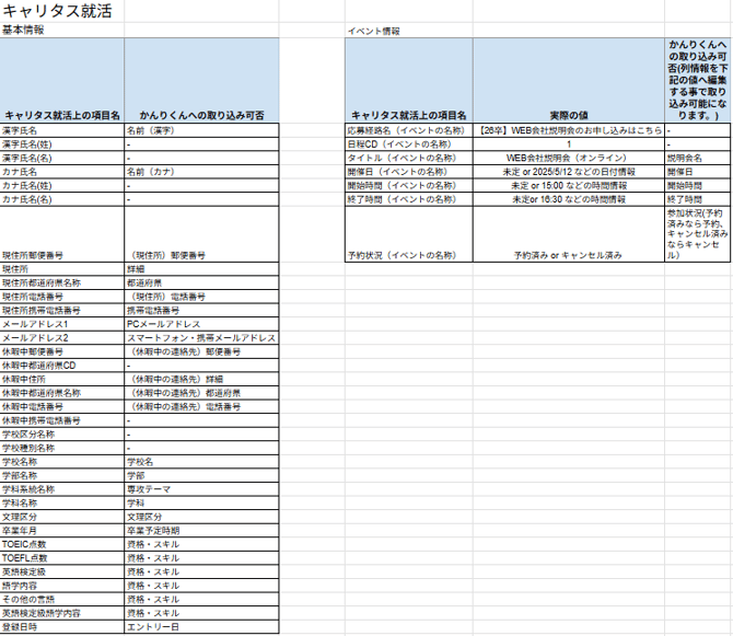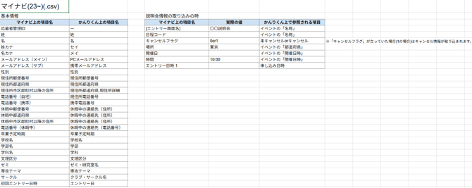 - 以下全ての項目がないと、説明会情報の取り込みができません。