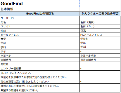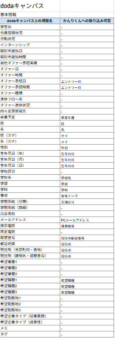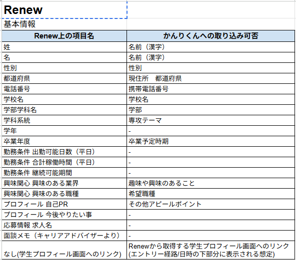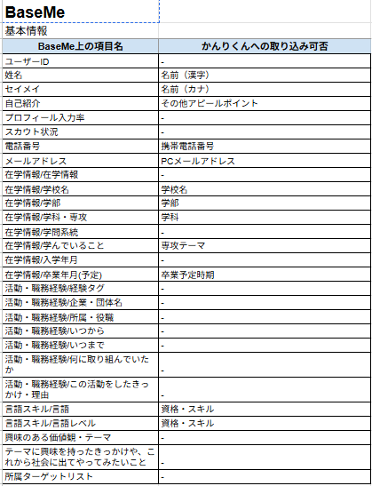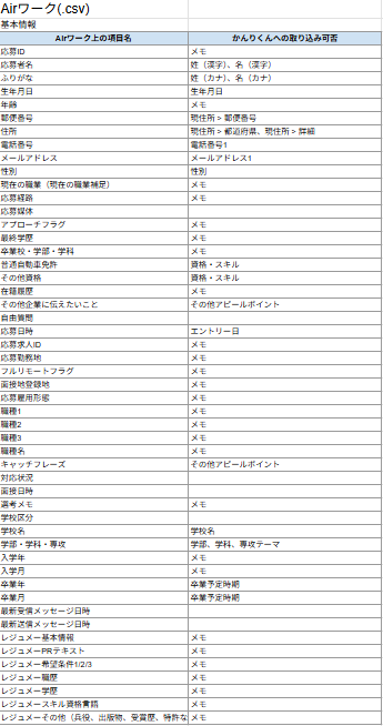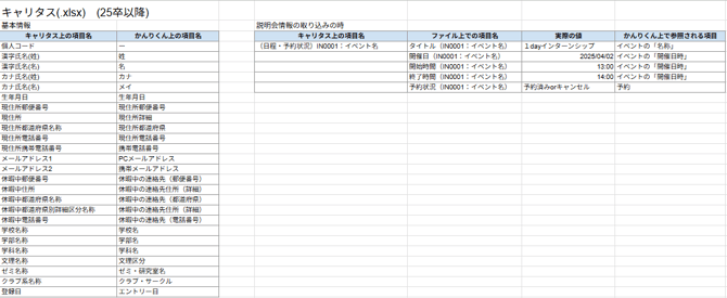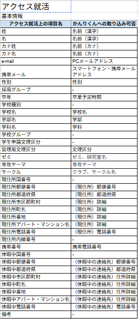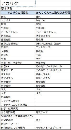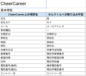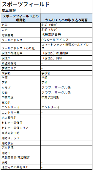 - 【新卒】 かんりくんへの取り込み可能項目一覧表