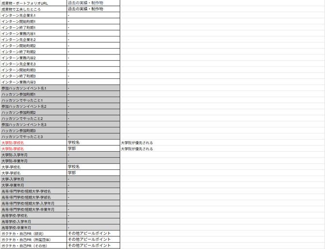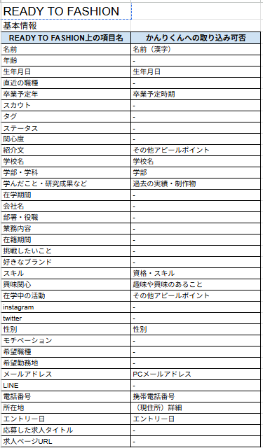 【新卒】取り込み可能項目一覧