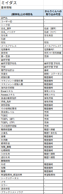 ※媒体自動取り込みの際は、2にてダウンロードしたファイルにて「氏名_漢字」「メールアドレス」列の値が入力されている(空ではない)候補者が対象となります。