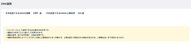 - 今月送信できるSMSの残数 ・今月送信できるSMSの上限目安