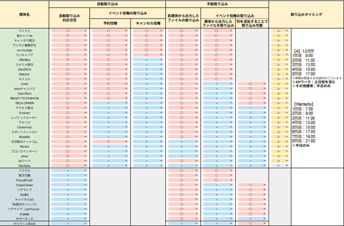 媒体毎の詳細な取込み可能項目は【新卒】 かんりくんへの取り込み可能項目一覧表をご確認ください。