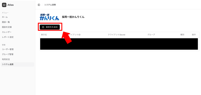 - Hajimari Atlasの管理画面で[ システム連携 ]を開く