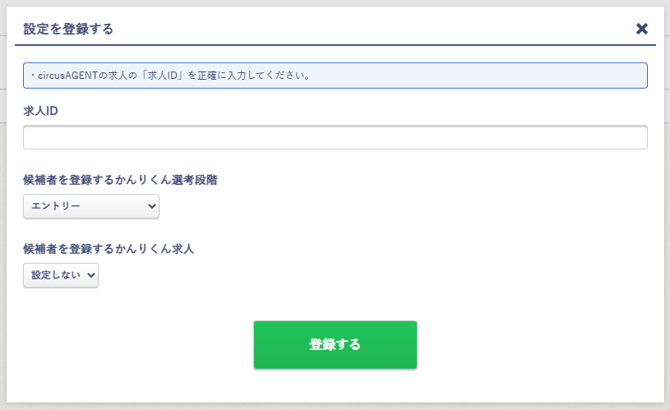 circusAGENTからかんりくんに取り込む求人と、かんりくんの採用フロー/選考段階/求人を紐付けます。